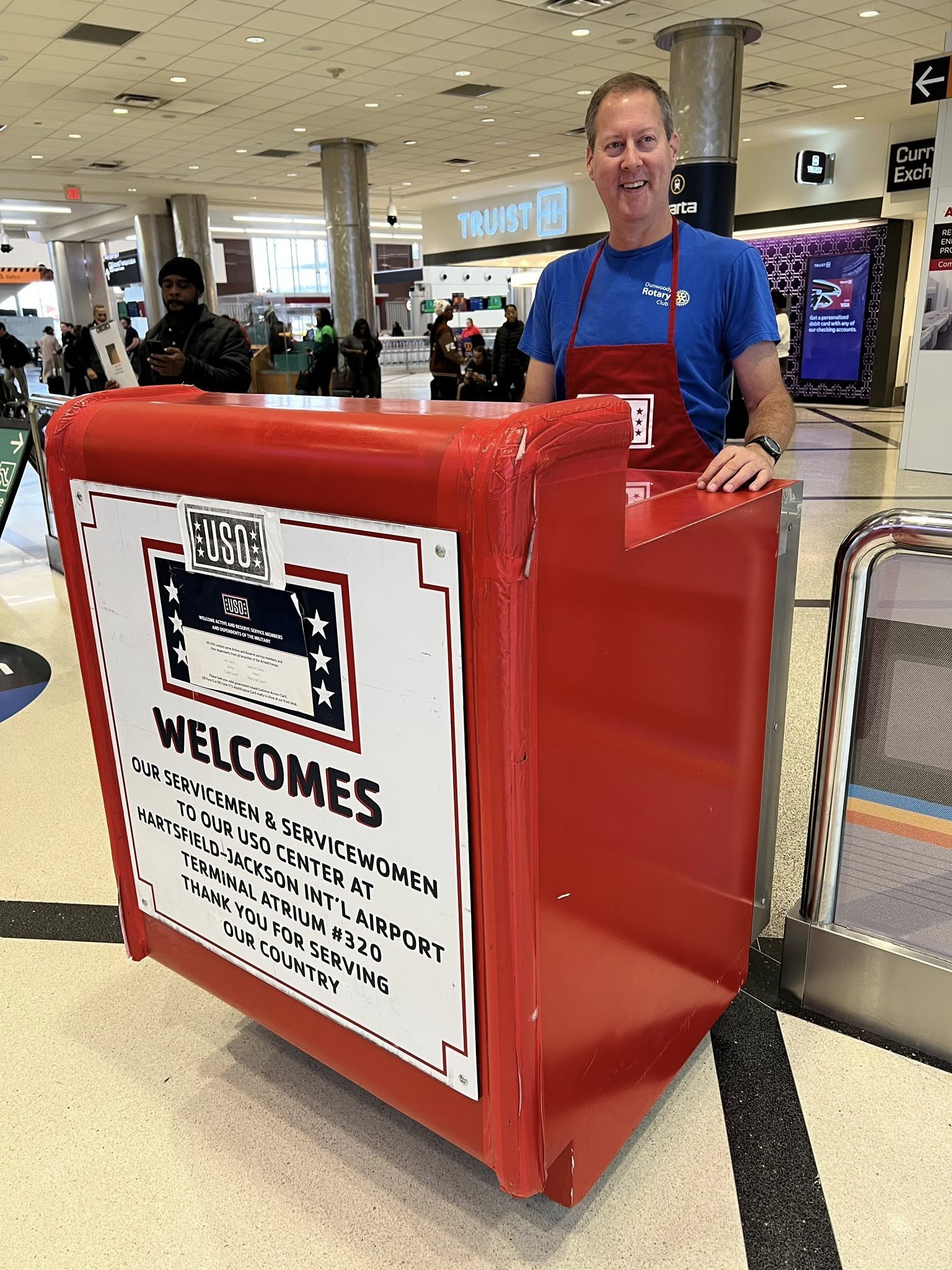 On Thursday October 30, 2025 the Rotary Club of Dunwoody held it's first USO Volunteer Day of the 2025-2026 Rotary Year. Club members volunteered to serve our service personnel and family members an “All American” lunch of hot dogs with all the condiments, potato chips, fresh fruit, snack bars, home baked cookies, bottled water AND a portion of Baked Ziti & Mom’s Meatballs from the E. 48th Street Market in Dunwoody!