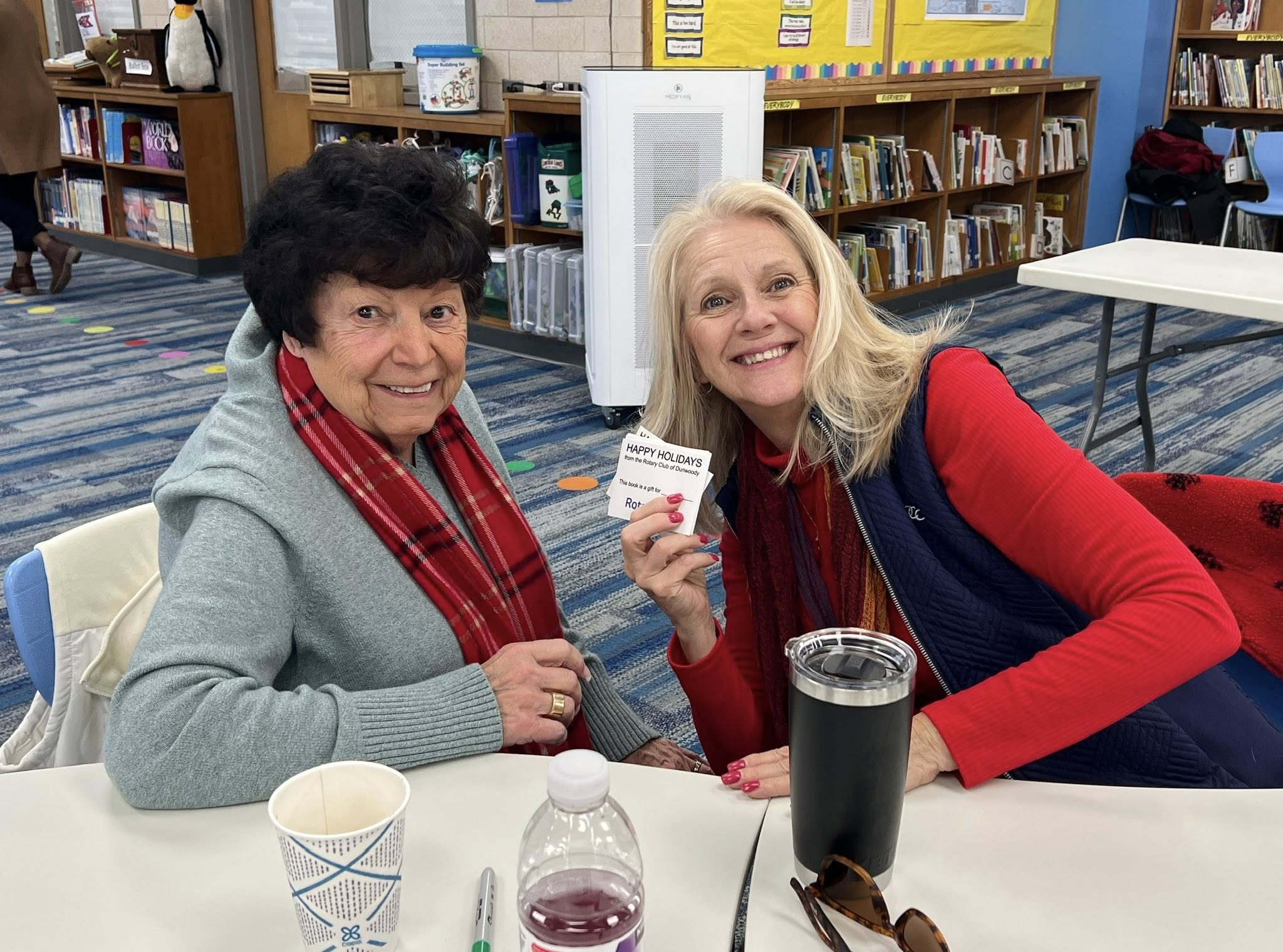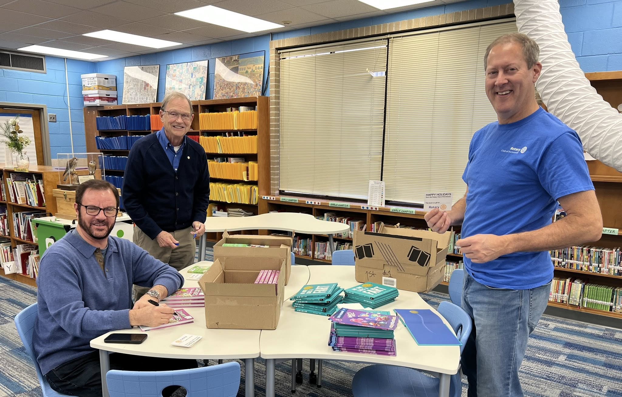 The school media specialist selected the books based upon age appropriateness, reading levels and other academic considerations.  Rotarians acquired the books, labeled them with Rotary placards as being gifted by the Rotary Club of Dunwoody and RI, and the books were distributed to the children.